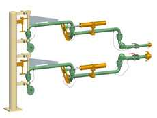 下裝鶴管 適用于成品油、化工介質(zhì)等裝車,由旋轉(zhuǎn)接臂、軟管及進口干式脫離接頭(干式閥)等組成。 |